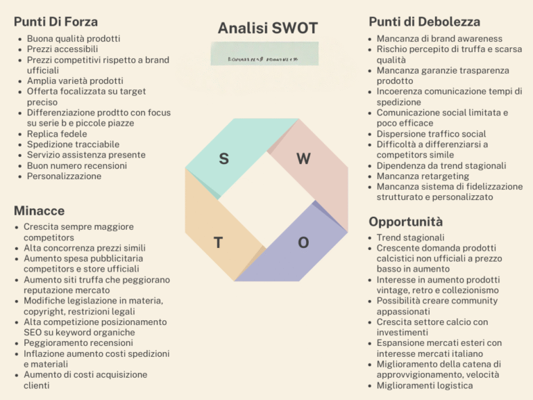 - SWOT Analysis con forze, debolezze, opportunità e minacce