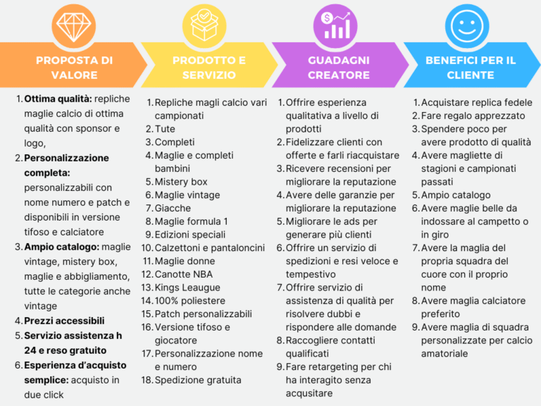 Value Proposition Canvas per definire cosa ti rende davvero diverso.