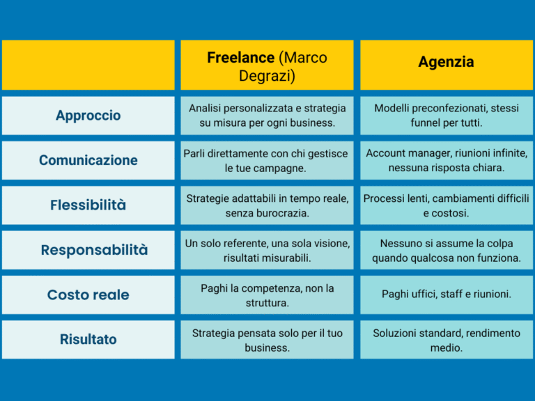 Non mi interessa “rubare clienti alle agenzie”: mi interessa far crescere i business che vogliono risultati veri.